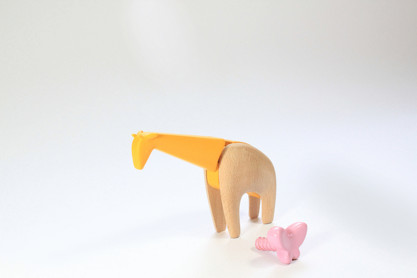 The plastic parts were created using 3D printing technique and the wooden parts were cut using CNC milling machine with manual finishing and coloring.
